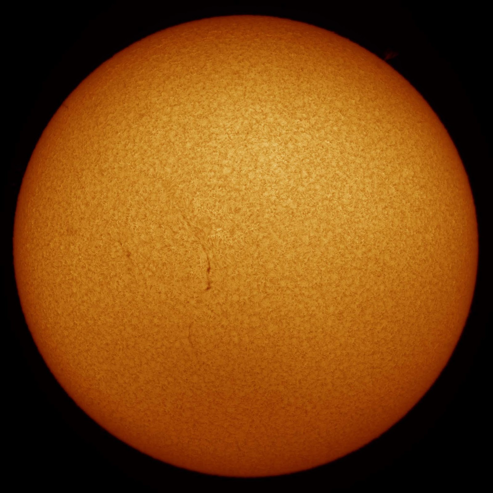 A couple of full disks from today; first up with the Coronado SM90 at prime focus, then followed by the double stack disk with the Lunt LS50 etalon and Daystar Quark. Camera used in both instances was the FLIR GH3 ICX916M. There isn't a huge amount of difference in details that would normally be expected in a single stack double stack comparison. Maybe I didn't have the etalons tuned quite right?